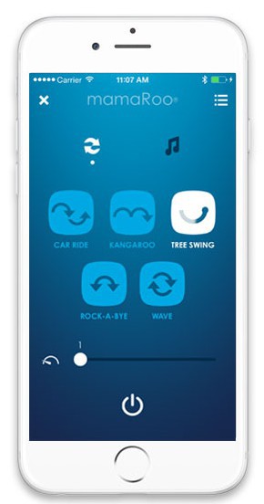4moms has released the 4moms mamaRoo 4. This new version features 50% increased speed, a new LCD control panel (below left), and the ability to connect via Bluetooth to a handheld device so you can control both sound and motion and speed remotely (below right).