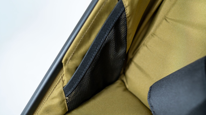 The aluminum frame is lightweight but feels incredibly sturdy. The folding joint moves slightly, but it still feels secure. The fabric tucks into grooves, translating into an overall streamlined appearance. There are minimal exposed fasteners or connection points to distract from the sleek look.