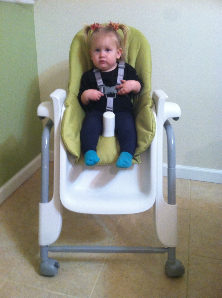The Seedling is a simple, fun chair that will have you wondering why other chairs seem to make things so complicated. For our ease of use metric, we specifically tested whether or not the chair was easy to get baby in and out of, and this one was due to the stationary crotch restraint (meaning the post between baby's legs did not remove with the tray). Harnessing baby into the 5-point restraint was easy, as was adjusting the straps. Unfortunately, the harness did not offer a one-handed release, but this was not a deal-breaker for us, just something to be aware of. It also was unable to convert to a 3-point restraint, like the Graco Blossom was, so if you have an older child, the shoulder restraints can be a pain. Our baby seemed relatively comfortable in this seat's padding, however there were other chairs, like the Peg Perego Siesta, that offered a more padded seat, as well as a better footrest. There are three reclining positions, but please be aware to always have baby's fingers out of the way when reclining, as our little tot's hands got pinched on the way back up!
