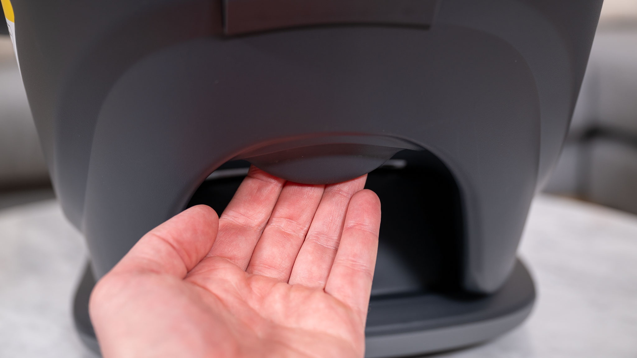Putting the carrier on the base is straightforward, and it would be challenging to do it incorrectly if you are paying attention. It falls into place, and even if you miss centering it on the first try, it clicks into place with just a nudge. The release button is midway down the back; it has a well-defined lip, so you know where to grab.